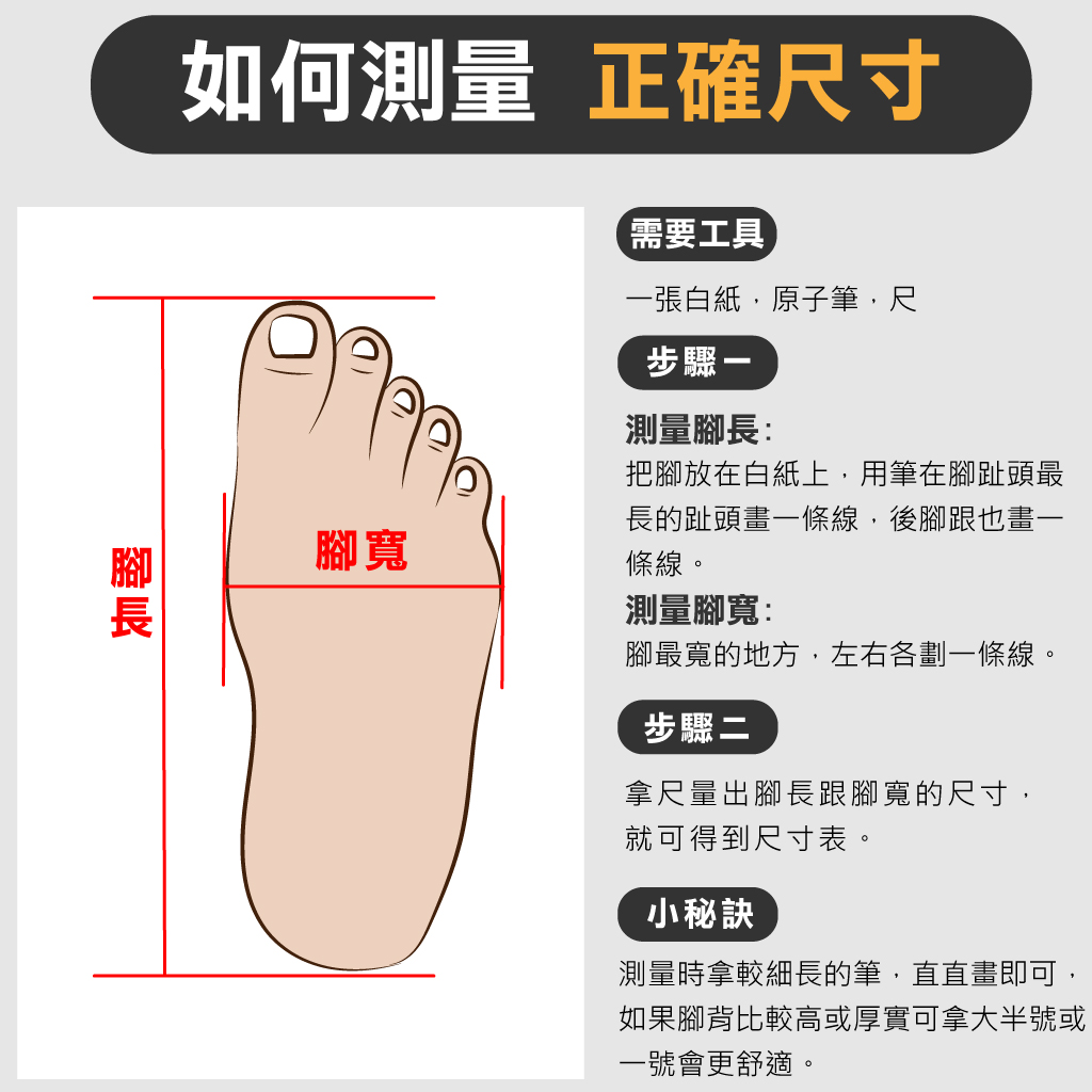 除參考平時著波鞋碼外,也請量度腳長/寬度 ? cm 比對鞋碼表