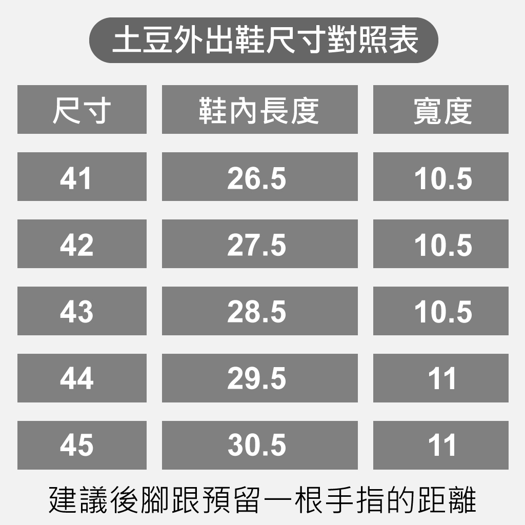 $1493 原價 $747 限時 5折 💥購買 足弓外出鞋 送足弓船襪乙對 優惠劵代碼 FGCSOCKS 💥 ** 香港現貨 2天內出貨 ** 「土豆外出鞋」舒緩足底疼痛不適 沿用土豆製鞋技術,從開發模具階段即依人體腳底弧度製作鞋床。 足弓部分採伏貼腳底隆起設計,使整個足弓區塊形成一個空氣帶。 當腳踩下去,上方有隆起足弓的球型弧帶會貼合我們的雙腳。 土豆外出鞋。 數位針織技術,面料透氣彈性佳。 ETPU超彈力大底,走路輕鬆又省力。 橡膠貼合鞋底,防滑更升級。 魔鬼氈設計,穿脫真輕鬆。 動態式平衡、貼合足弓設計,全面性舒壓。 藍標認證AEGIS技術,鞋墊能減少異味產生,降低細菌附著。 防滑非止滑,於濕滑地面或非常態地面使用時,應小心行走,注意安全。 顏色: 黑色, 灰色, 芋粉色 尺碼: 36, 37, 38, 39, 40, 41, 42, 43, 44, 45 請參照附圖尺寸表,建議以實際腳長作為尺寸換算之依據。 全新上市土豆鞋外出鞋・將動態人體工學導入製鞋。 極致的舒適感受,不只好看更好走。 \動態式平衡 全面性抒壓 / 創造抗引力的漂浮感 抒緩腳的壓力 「希望腳有不適者不用找矯正師訂製鞋子,也有好鞋可穿。」 從這個心願開始,自此製鞋不再只是關注鞋子本身,需要更深入地去探究人的身體運作,將能應變人體動作與負重的設計代入製鞋。 骨骼筋絡。人體工學。站立走路。重心移轉。……都是課題。 從中找出兼顧柔軟舒適與支撐耐磨,得以承載雙腳的中庸之道。 經過精密的計算及無數次的實驗,這才迎來了搭乘土豆鞋來到地球的土豆星人,把土豆星球的漂浮感透過土豆鞋,分享給地球人。 那年是?年,降落的時候,水泥地上印上溼溼的土豆殼鞋印。很多人穿了就愛上,因為腳就不痛了,不累了;站得更久,走得更遠。 老人、孕婦、腳受傷的人、需要長時間站立的人,都如釋重負地笑了。土豆星人為了更融入地球,也配合人們生活的需求,變化不同的造型。 夾腳鞋、拖鞋、包鞋、皮拖鞋、外出鞋、商務皮鞋……等。 #NewBuffalo足弓外出鞋 #土豆外出鞋 #NewBuffalo #足弓除臭鞋 #足弓鞋 #足弓波鞋 #足底筋膜炎波鞋 #舒壓鞋 #公司鞋 #台灣製造 #MIT #牛頭牌 #足底筯膜炎鞋 #牛頭牌工作鞋 #牛頭牌鞋 #牛頭牌波鞋 #tudoo #護踝波鞋 #扁平足